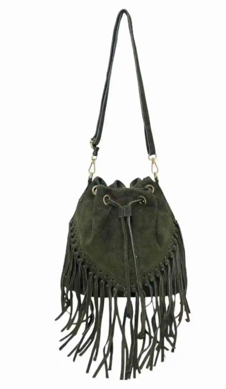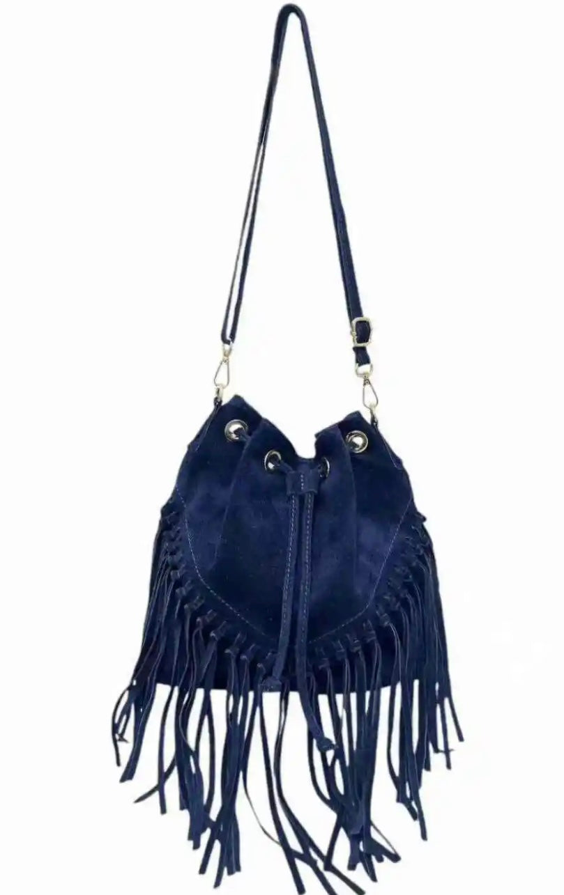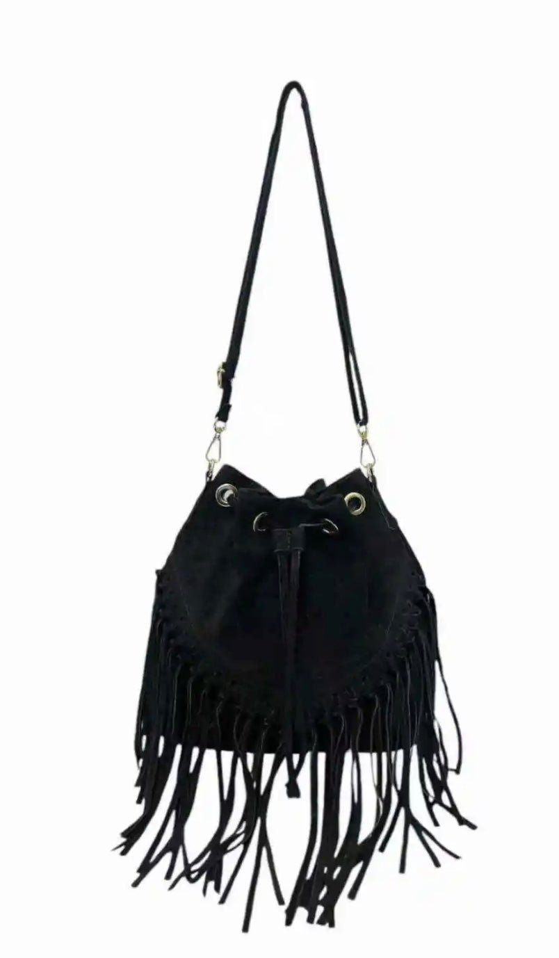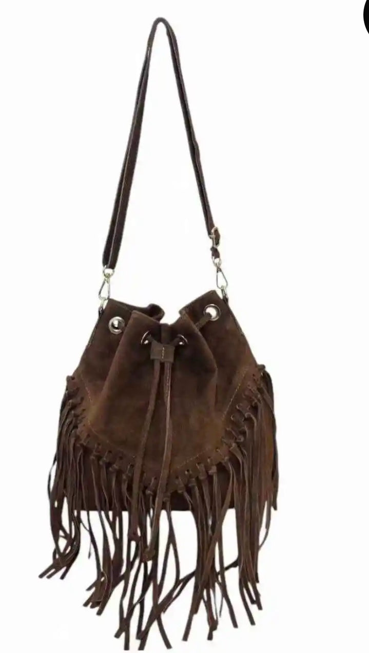Bolsa de couro italiano , franjas elegantes, ideal para outono/inverno