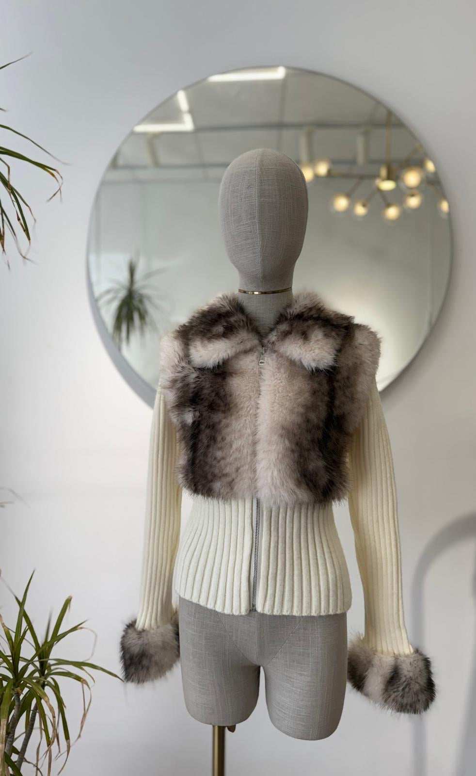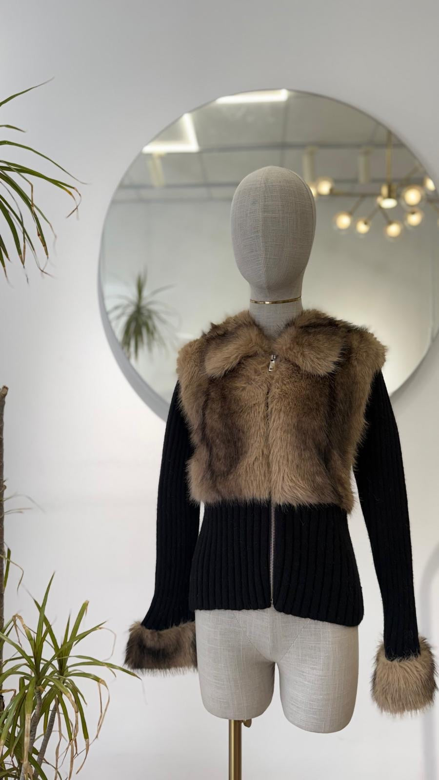 Casaco com fecho frontal malha canelada tamanho único recomendado até ao Xl com colete pelo e Punhos.