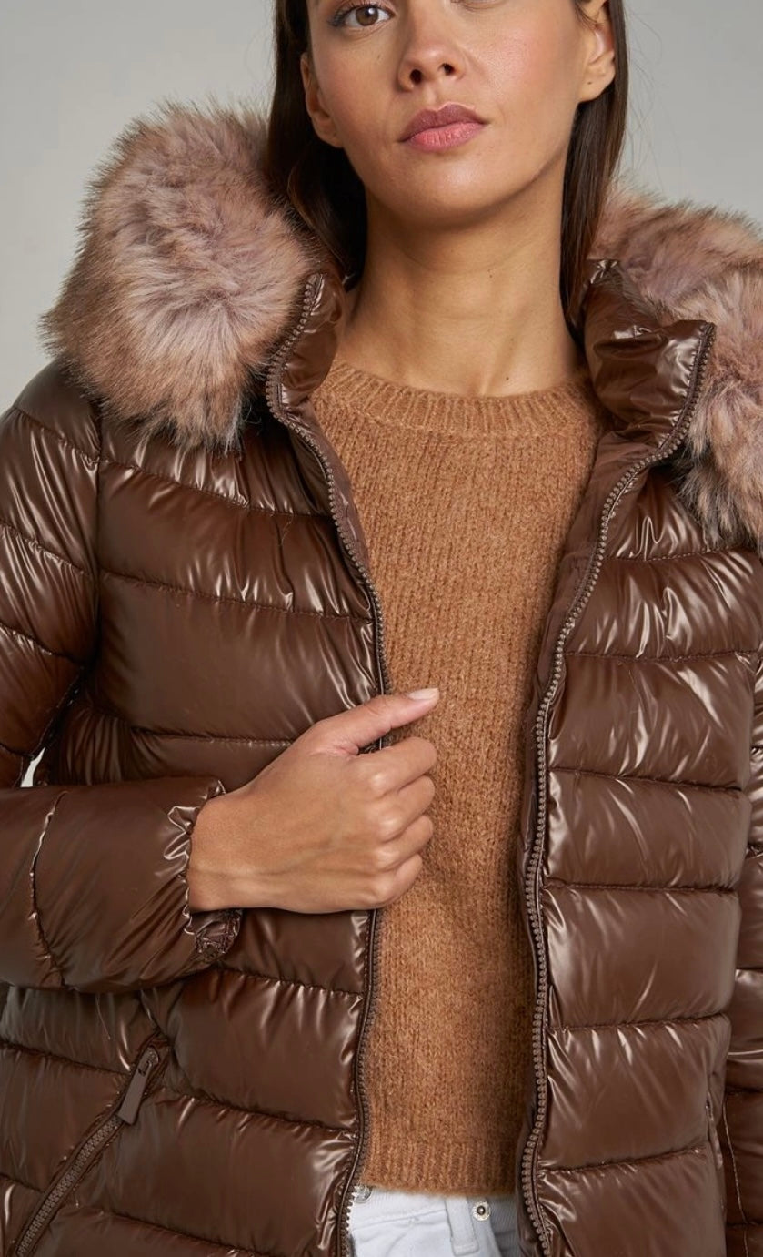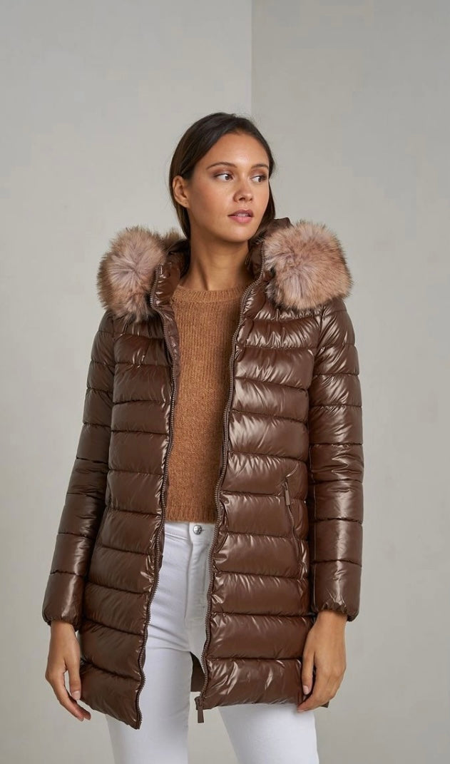 Kispo Castanho com capuz pelo removível