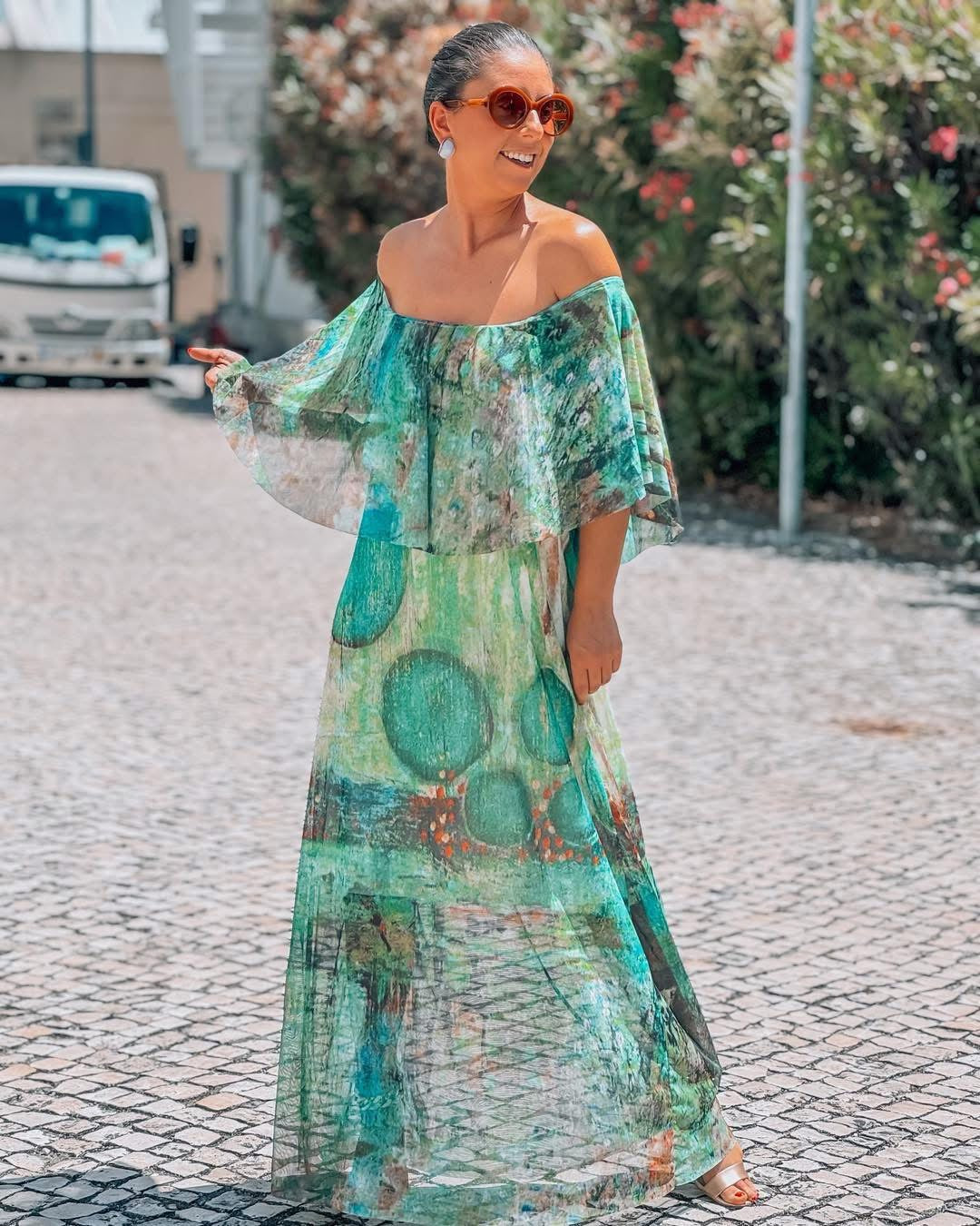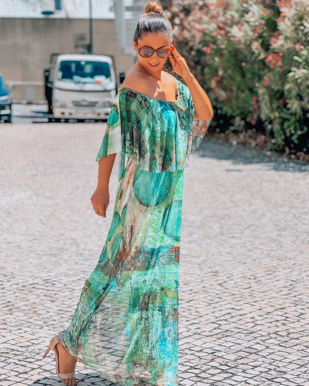 Vestido em tule forrado a algodão até ao joelho