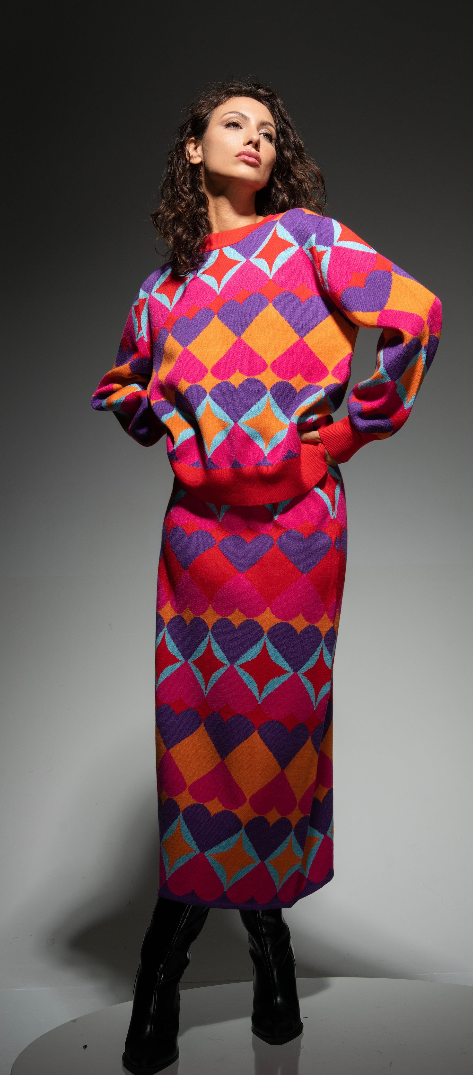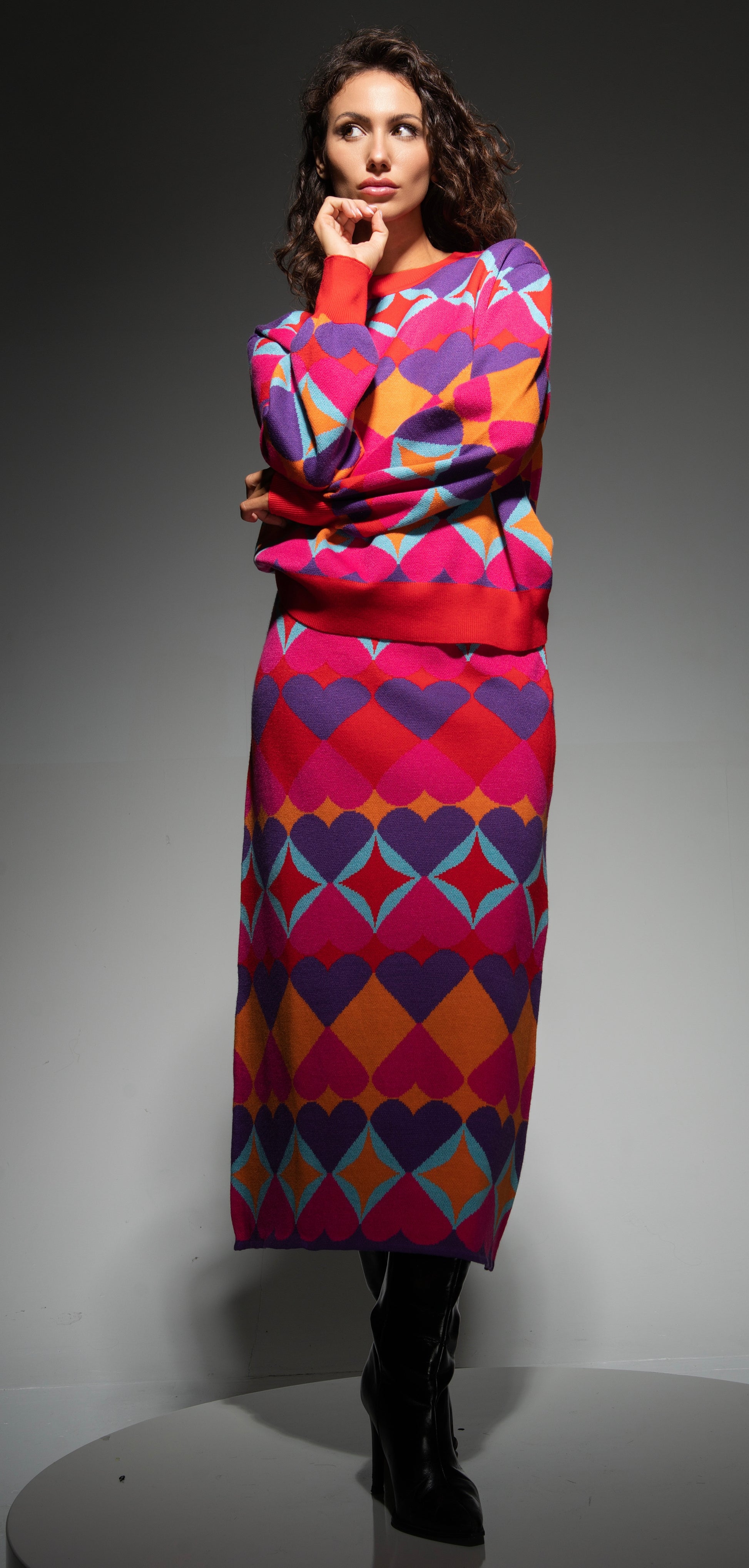 Conjunto em malha composto por sweat e saia tamanho único veste até xl