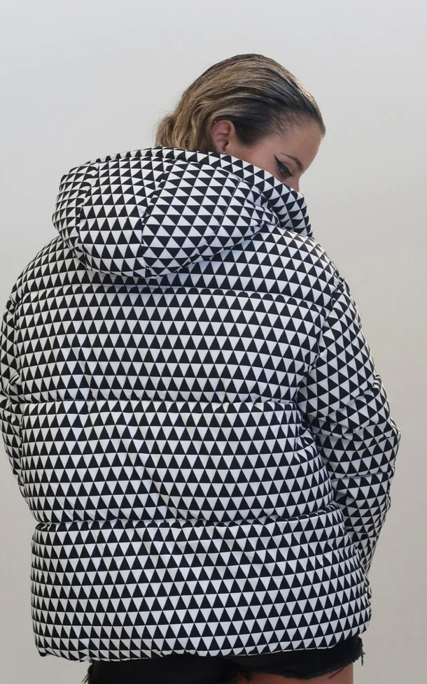 Kispo puffer feminino tamanho único recomendado até xl preto e branco com apontamentos em verde alface