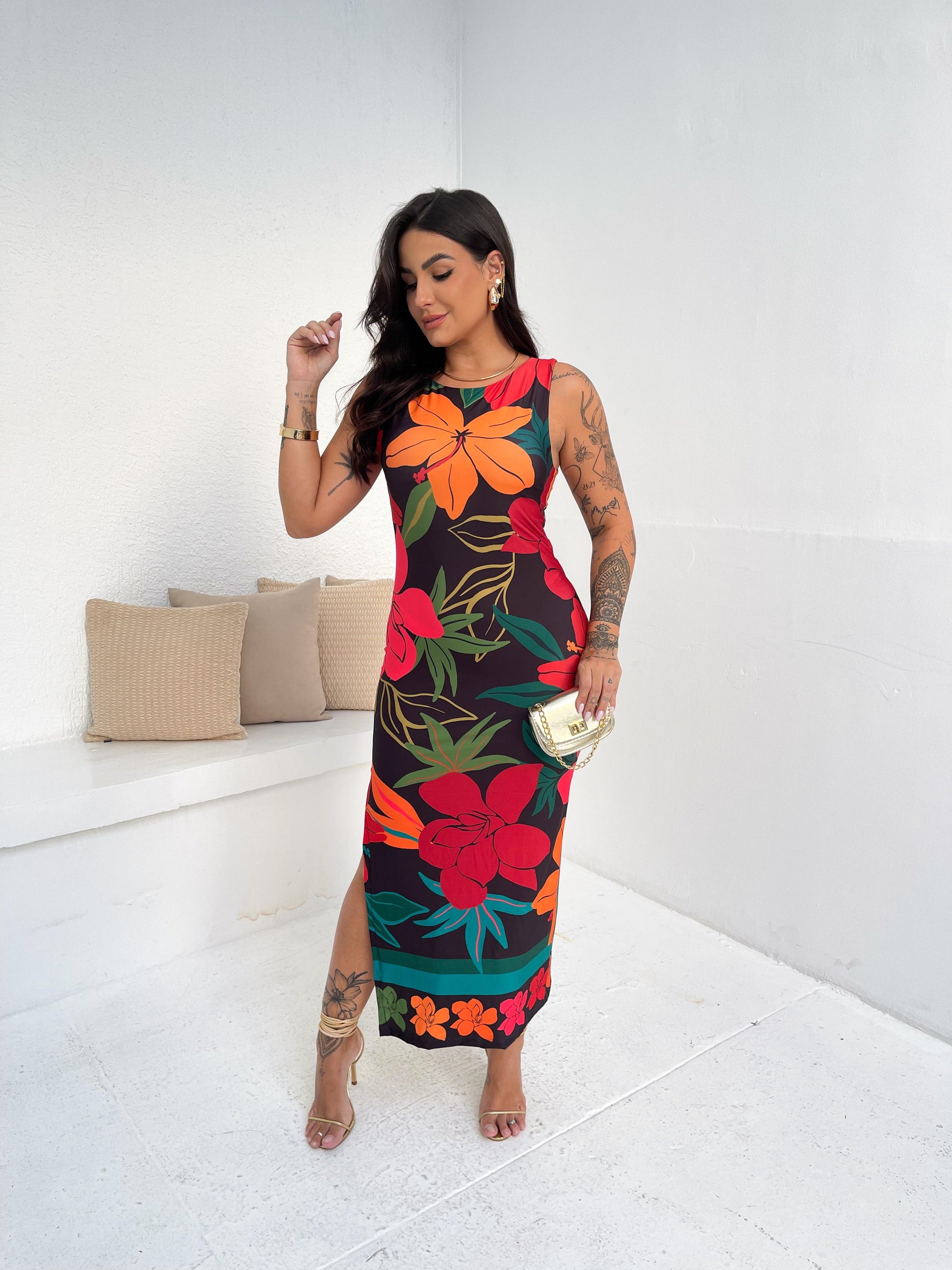 Vestido longo sereia em malha fria suplex recomendado até ao L