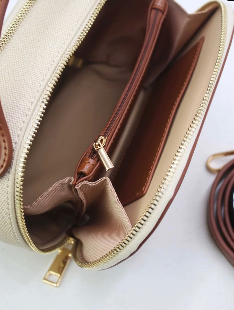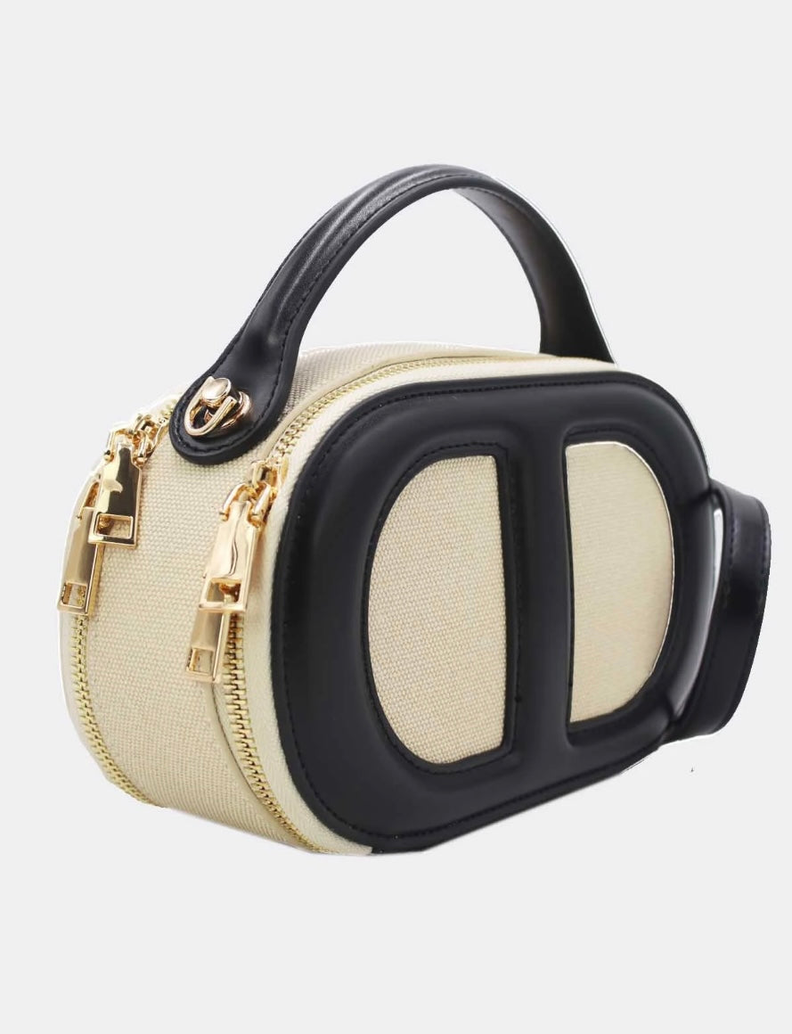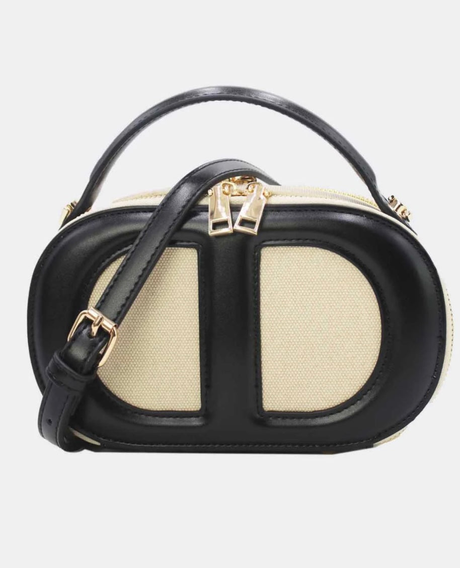 Mini bolsa de mão com efeito de couro e tecido RE-STOCKING