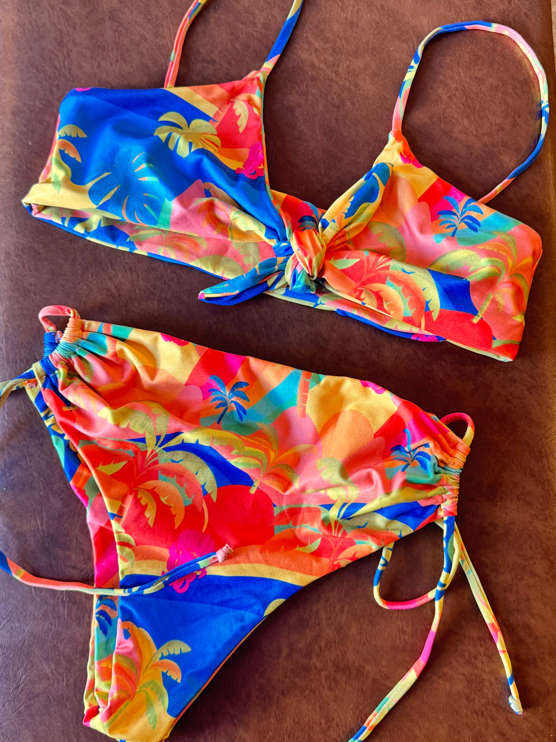Parte de cima laço alça regulavel em malha suplex o que permite maior secagem e durabilidade da estampa ao sol e água