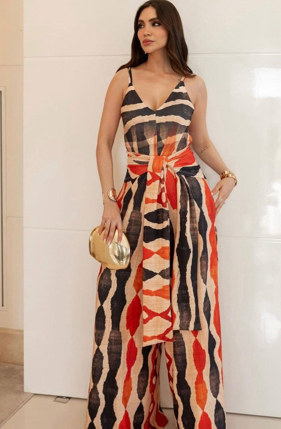Macacão prime em malha de crepe com fecho invisível e faixa removível