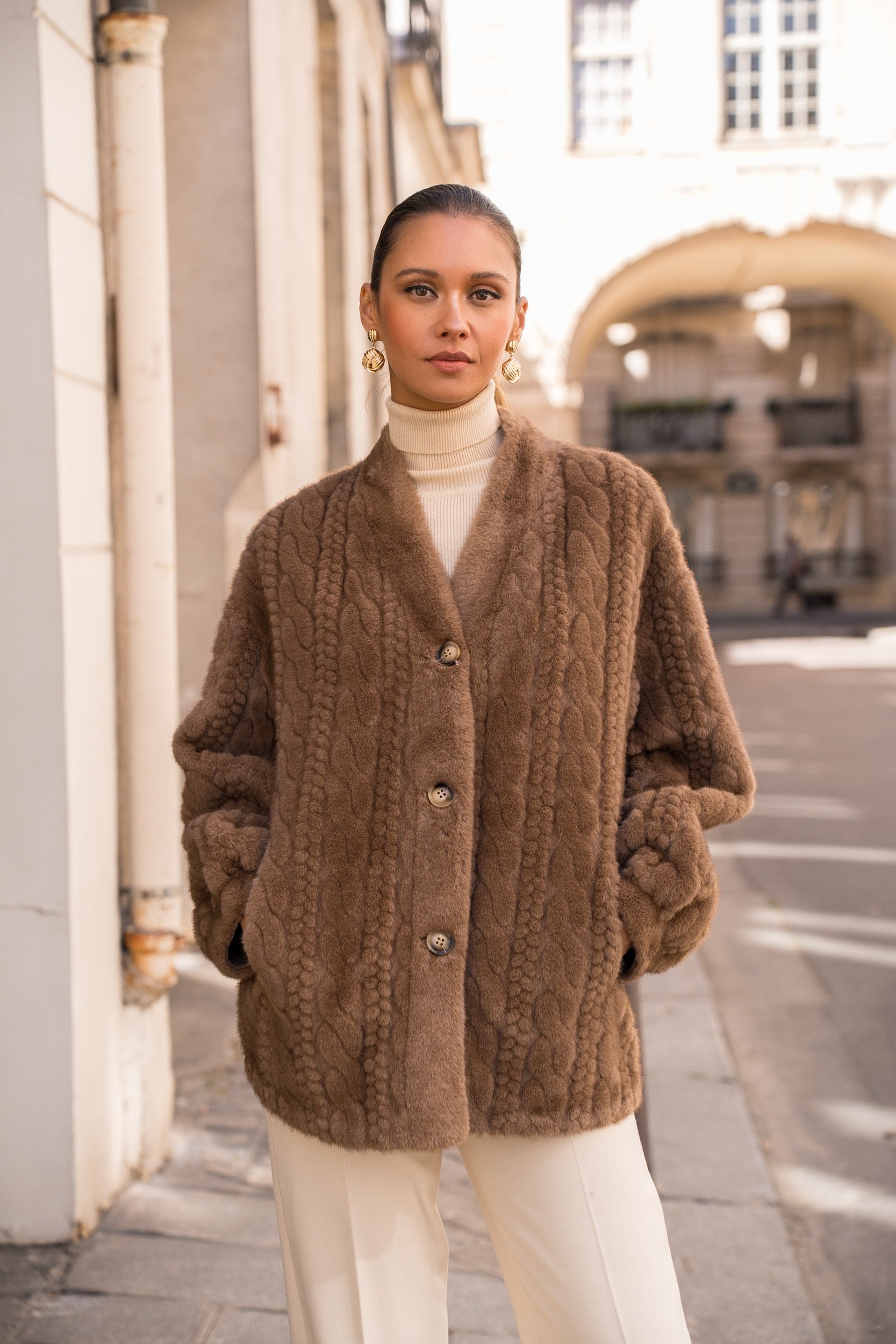 Cacaso em pelo sintético entrelaçado tamanho único recomendado até xl